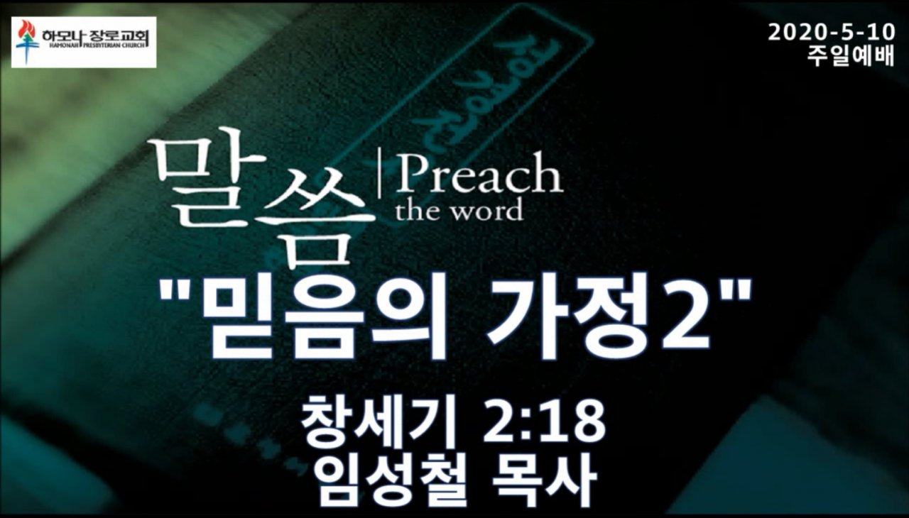 2020-5-10, "믿음의 가정2”, 창 2:18, 주일예배, 하모나장로교회, 임성철 목사