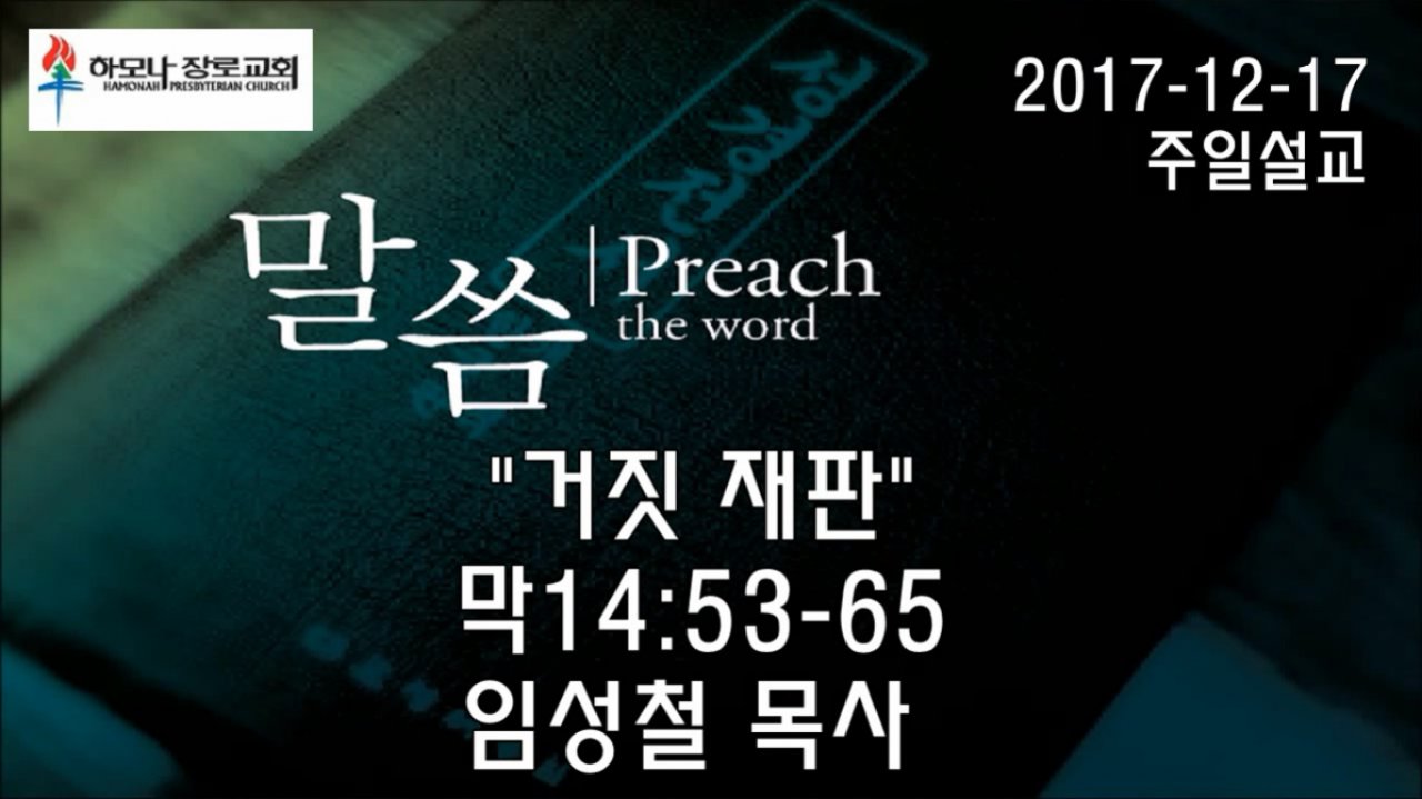 2017-12-17, "거짓 재판", 막14:53-65, 주일설교, 하모나장로교회, 임성철 목사