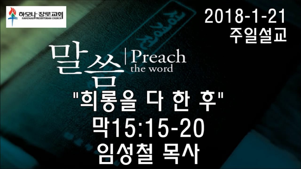 2018-1-21, "희롱을 다 한 후", 막15:15-20, 주일설교, 하모나장로교회, 임성철 목사