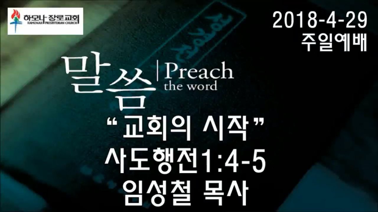 2018-4-29, “교회의 시작”, 행1:4-5, 주일예배, 하모나장로교회, 임성철 목사