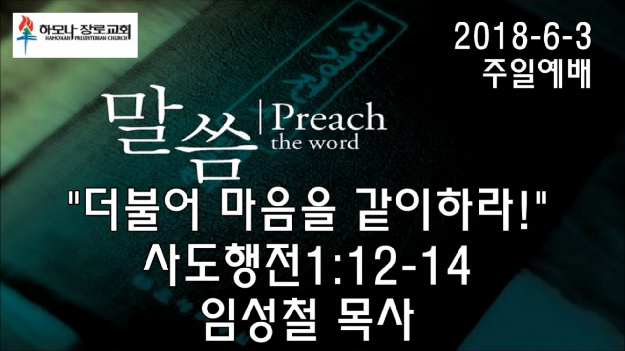 2018-6-3, "더불어 마음을 같이하라!", 사도행전1:12-14, 주일예배, 하모나장로교회, 임성철 목사