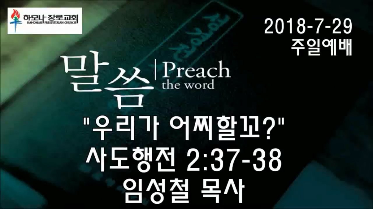 2018-7-29, "우리가 어찌할꼬?", 행2:37-38, 주일예배, 하모나장로교회, 임성철 목사