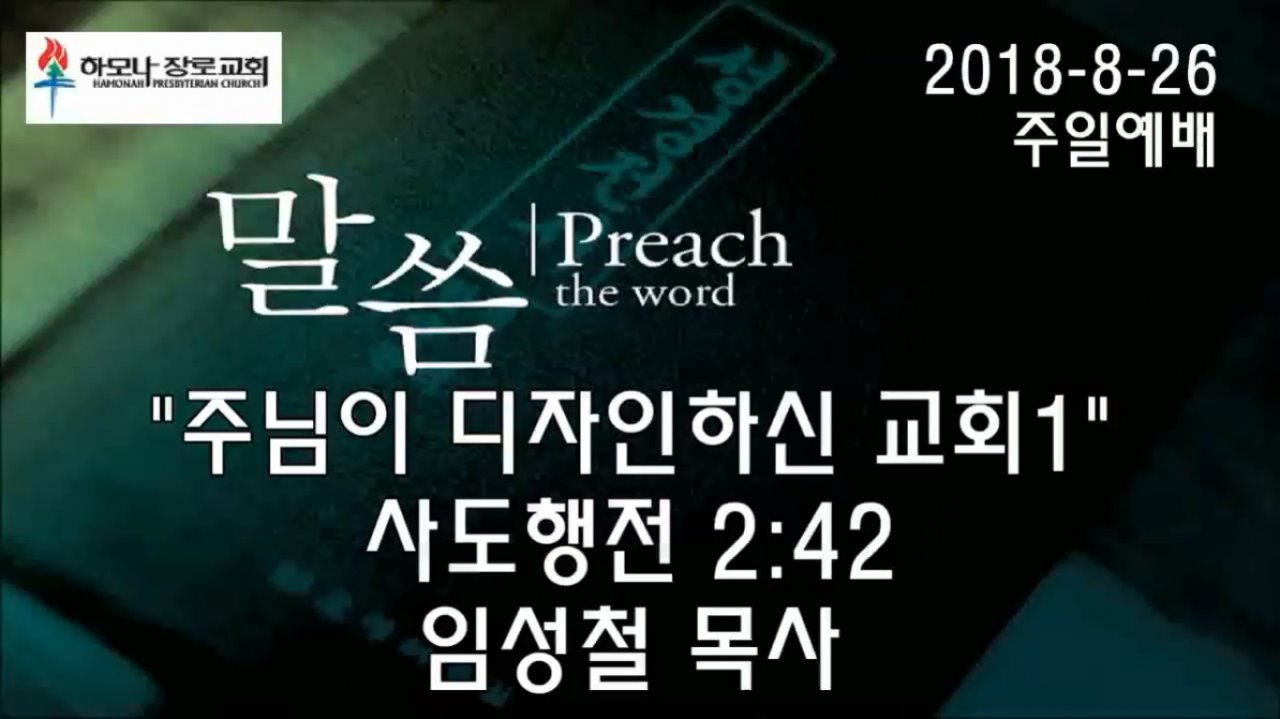 2018-8-26, "주님이 디자인하신 교회1", 행2:42, 주일예배, 하모나장로교회, 임성철 목사