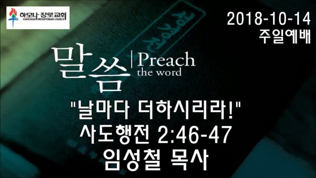 2018-10-14, "날마다 더하시리라!", 행2:46-47, 주일예배, 하모나장로교회, 임성철 목사