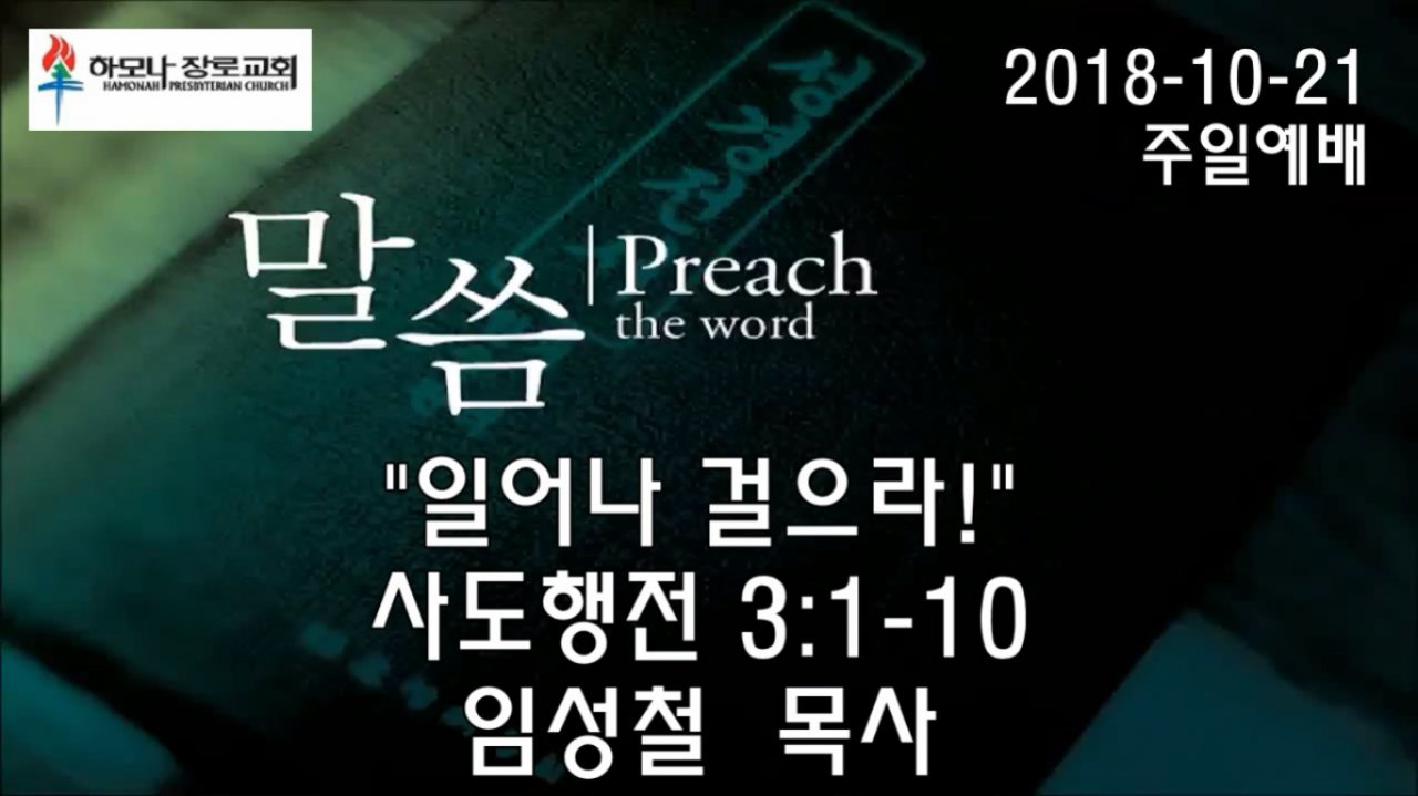 2018-10-21, "일어나 걸으라!", 행3:1-10, 주일예배, 하모나장로교회, 임성철 목사