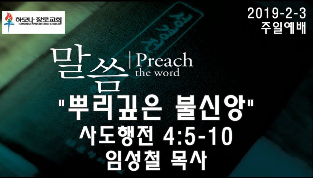 2019-2-3, "뿌리깊은 불신앙", 사도행전 4:5-10, 주일예배, 하모나장로교회, 임성철 목사