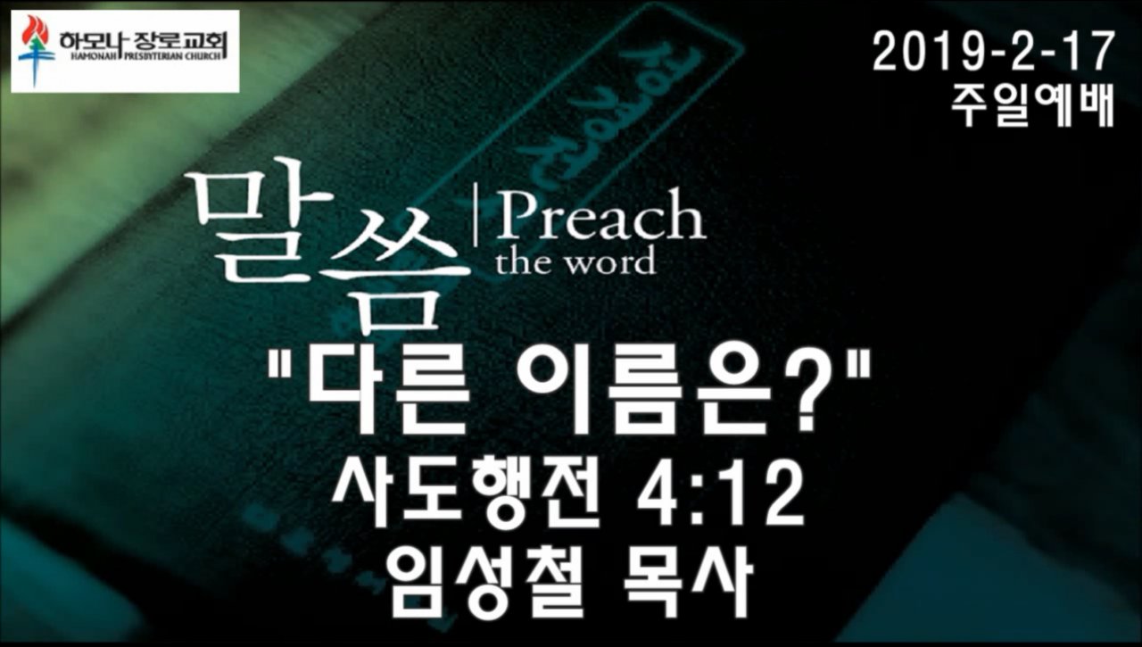 2019-2-17, "다른 이름은?", 사도행전 4:12, 주일예배, 하모나장로교회, 임성철 목사