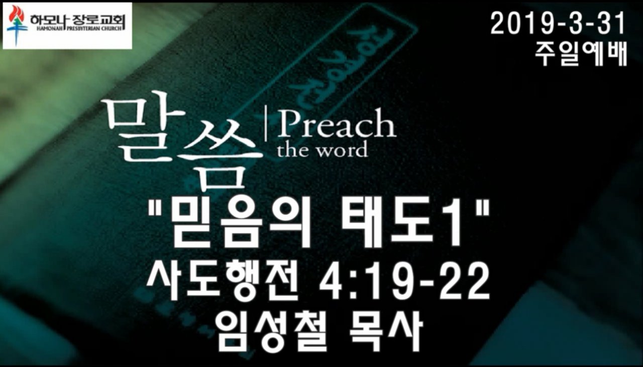 2019-3-31, "믿음의 태도1", 사도행전 4:19-22, 주일예배, 하모나장로교회, 임성철 목사