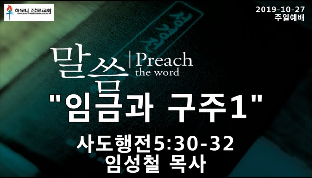 2019-10-27, "임금과 구주1", 사도행전5:30-32, 주일예배, 하모나장로교회, 임성철 목사