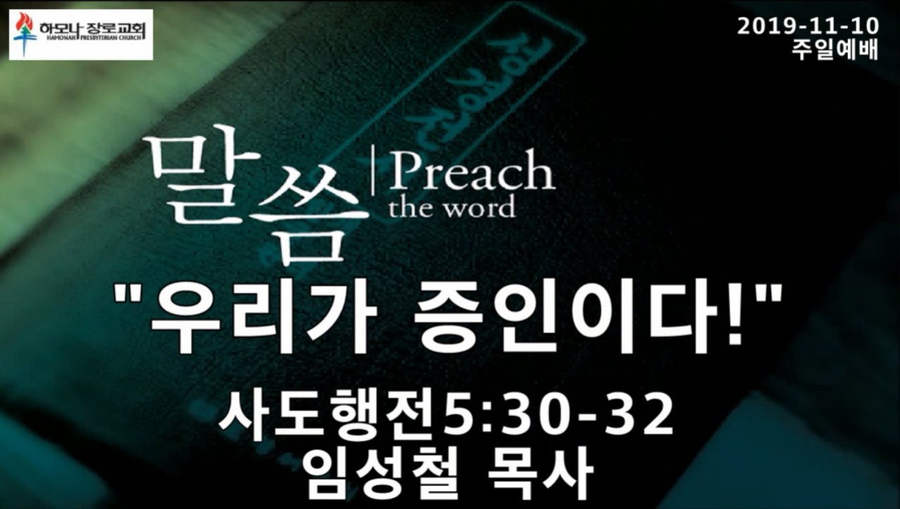 2019-11-10, "우리가 증인이다!", 사도행전5:30-32, 주일예배, 하모나장로교회, 임성철 목사