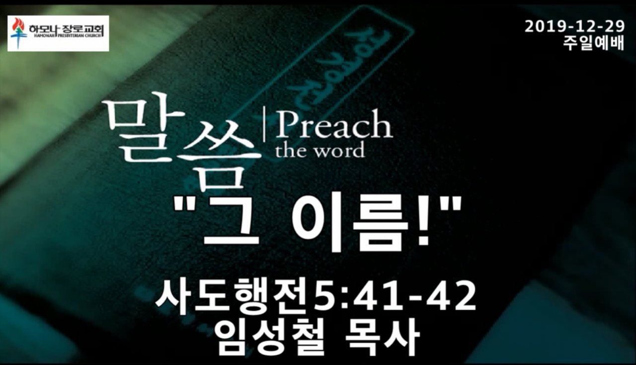 2019-12-29, "그 이름!", 사도행전5:41-42, 주일예배, 하모나장로교회, 임성철 목사