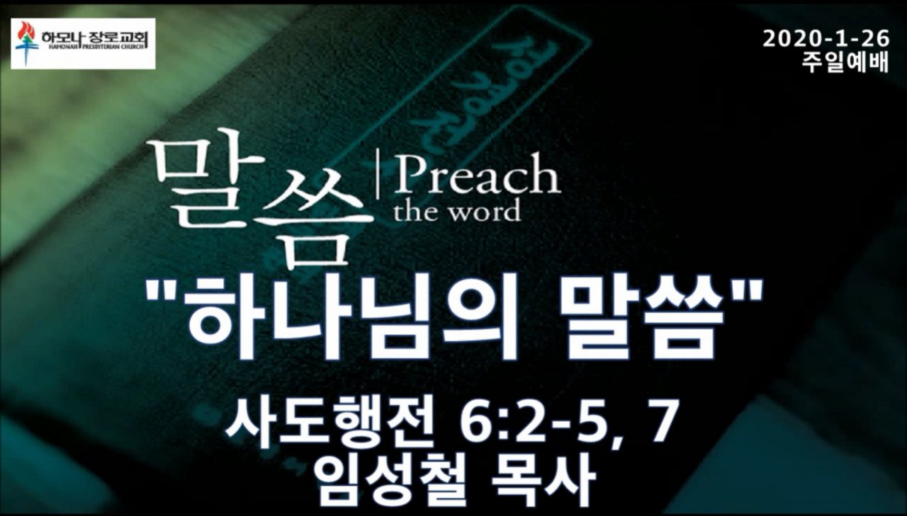2020-1-26, "하나님의 말씀", 사도행전 6:2-5, 7, 주일예배, 하모나장로교회, 임성철 목사