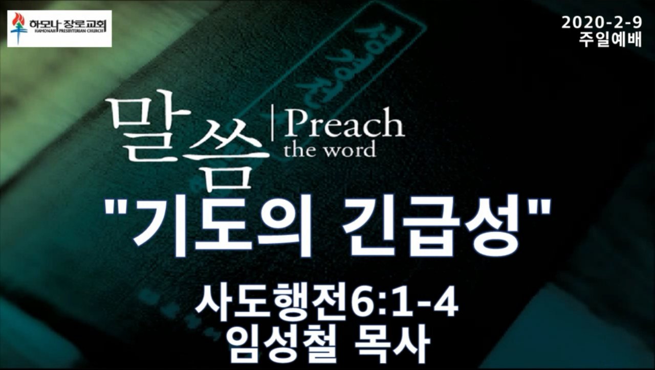 2020-2-9, "기도의 긴급성", 사도행전6:1-4, 주일예배, 하모나장로교회, 임성철 목사