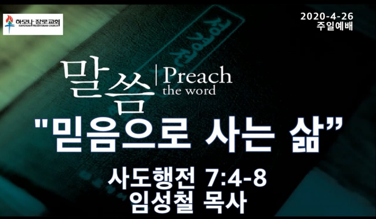 2020-4-26, "믿음으로 사는 삶”, 사도행전 7:4-8, 주일예배, 하모나장로교회, 임성철 목사