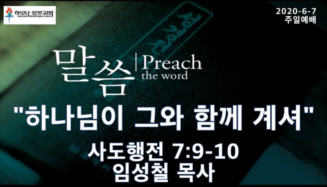 2020-6-7, "하나님이 그와 함께 계셔”, 사도행전 7:9-10, 주일예배, 하모나장로교회, 임성철 목사