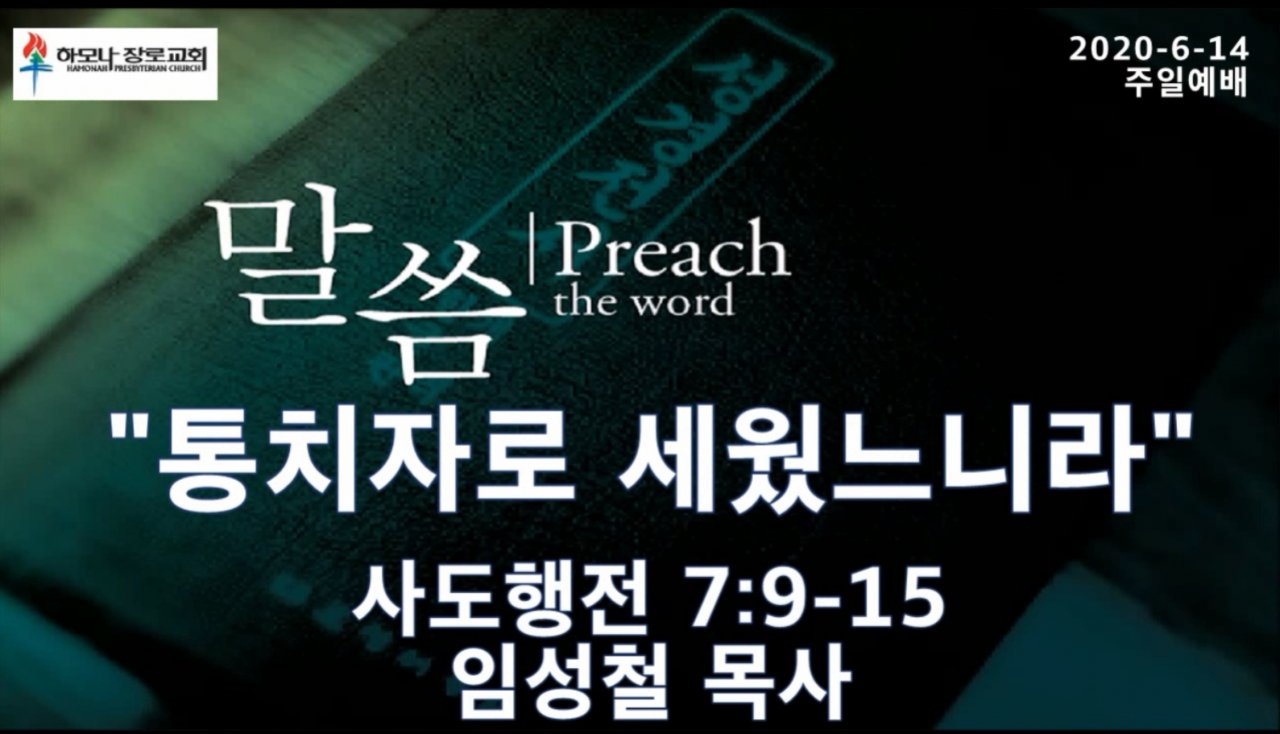2020-6-14, "통치자로 세웠느니라”, 사도행전 7:9-15, 주일예배, 하모나장로교회, 임성철 목사