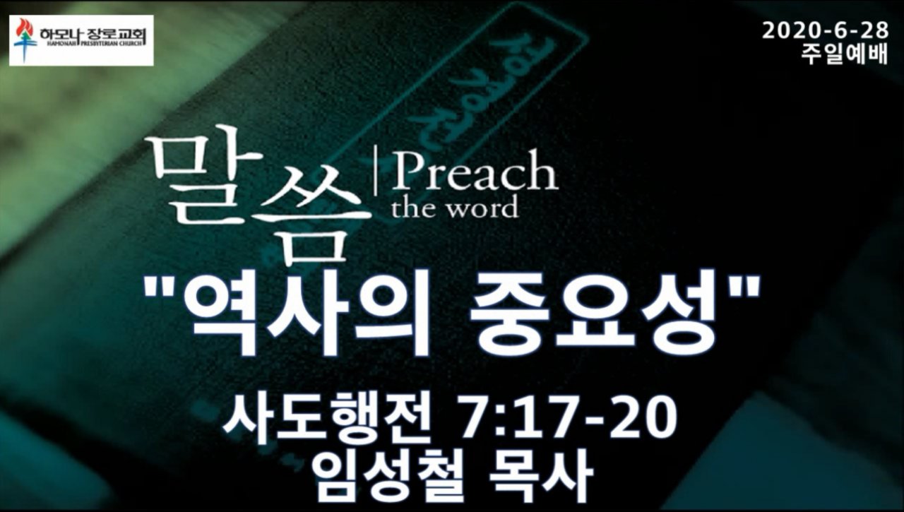 2020-6-28, "역사의 중요성”, 사도행전 7:17-20, 주일예배, 하모나장로교회, 임성철 목사