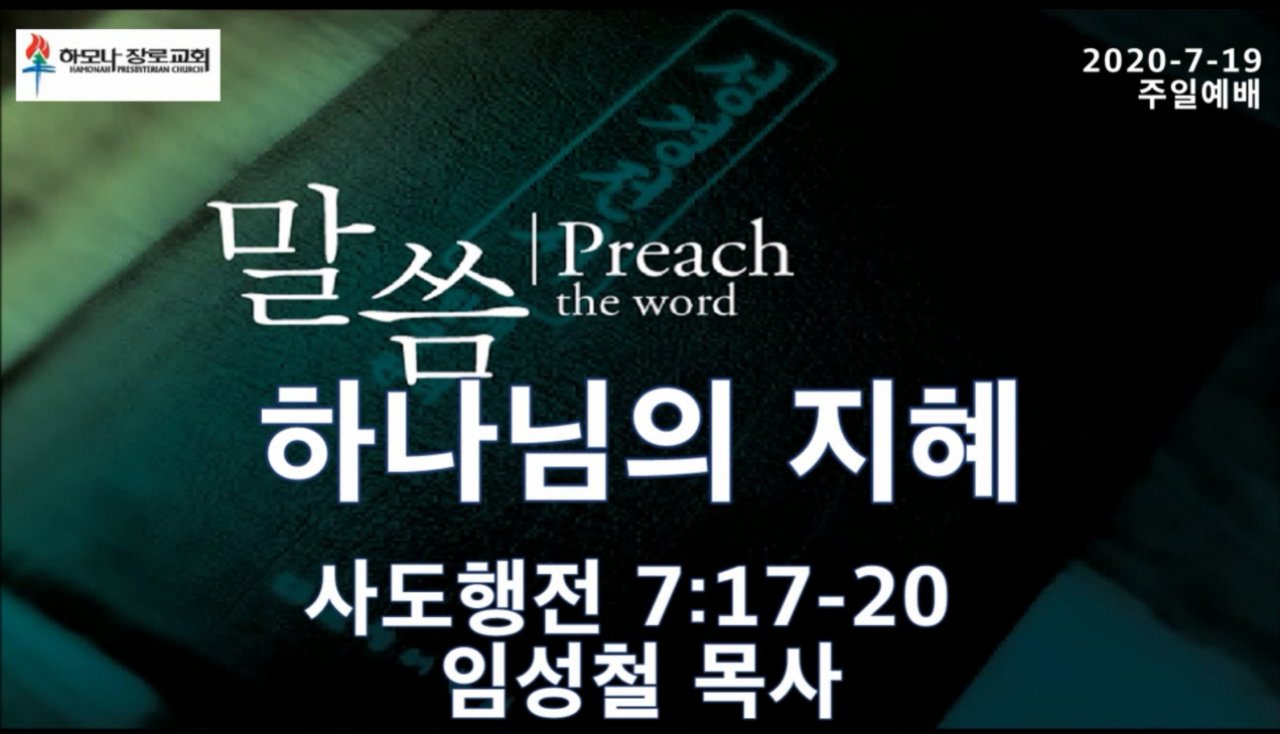 2020-7-19, 하나님의 지혜, 사도행전 7:17-20 , 주일예배, 하모나장로교회, 임성철 목사