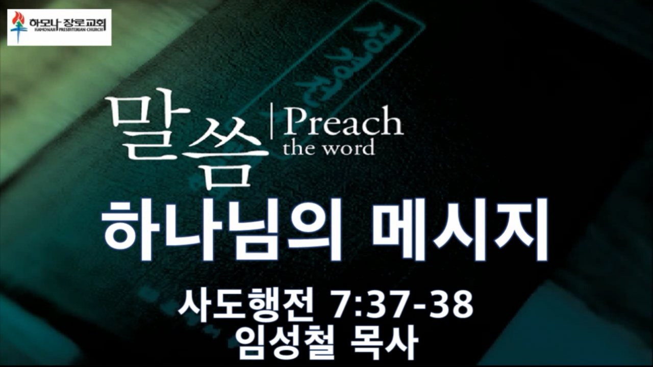 2020-9-27, 하나님의 메시지, 사도행전 7:37-38, 주일예배, 하모나장로교회, 임성철 목사