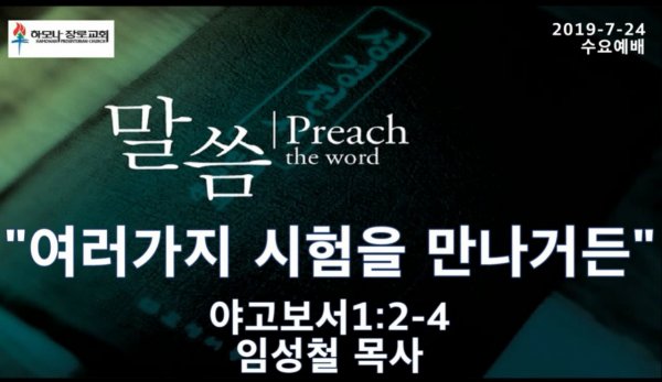 2019-7-24, "여러가지 시험을 만나거든", 약1:2-4, 수요예배, 하모나장로교회, 임성철 목사