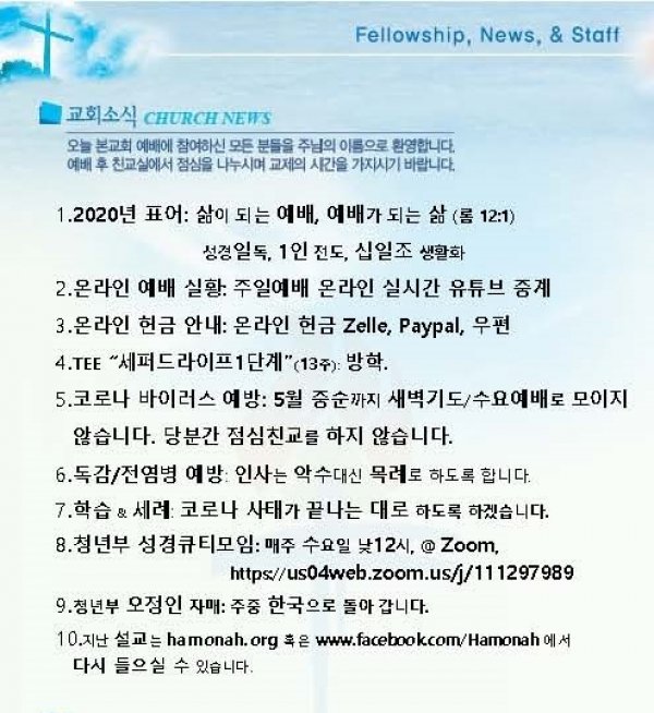 날짜: 2020.04.06 글쓴이 : 관리자 | 교회소식 News