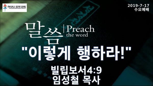 2019-7-17, "이렇게 행하라!", 빌4:9, 수요예배, 하모나장로교회, 임성철 목사