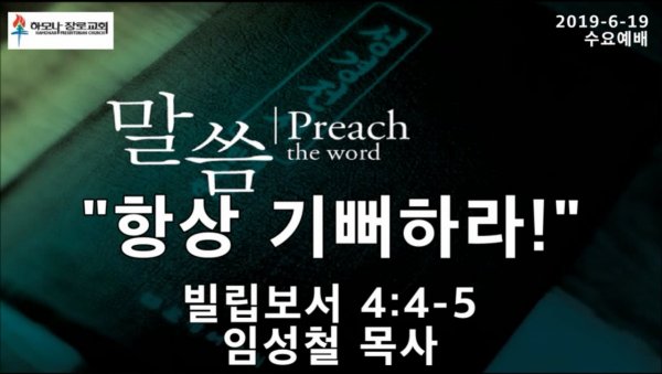 2019-6-19, "항상 기뻐하라!", 빌4:4-5, 수요예배, 하모나장로교회, 임성철 목사
