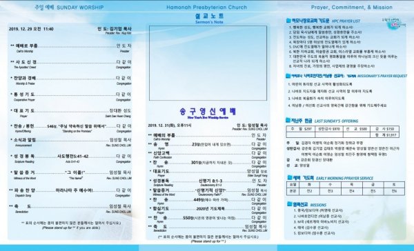 날짜: 2019.12.31 글쓴이 : 관리자 | 주보보기 Bulletins