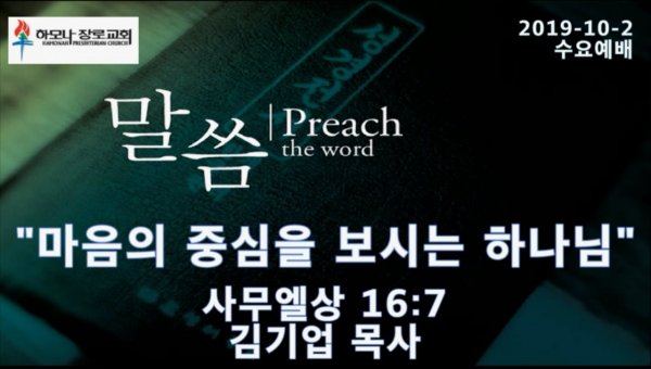 2019-10-2, "마음의 중심을 보시는 하나님", 사무엘상 16:7, 수요예배, 하모나장로교회, 김기업 목사