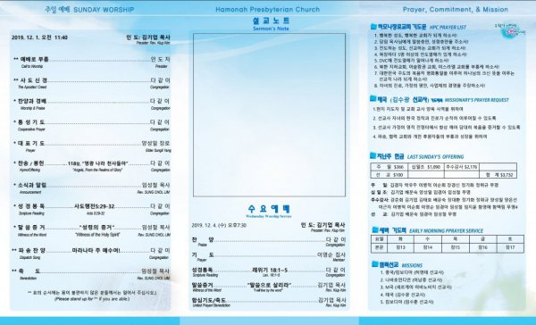 날짜: 2019.11.30 글쓴이 : 관리자 | 주보보기 Bulletins