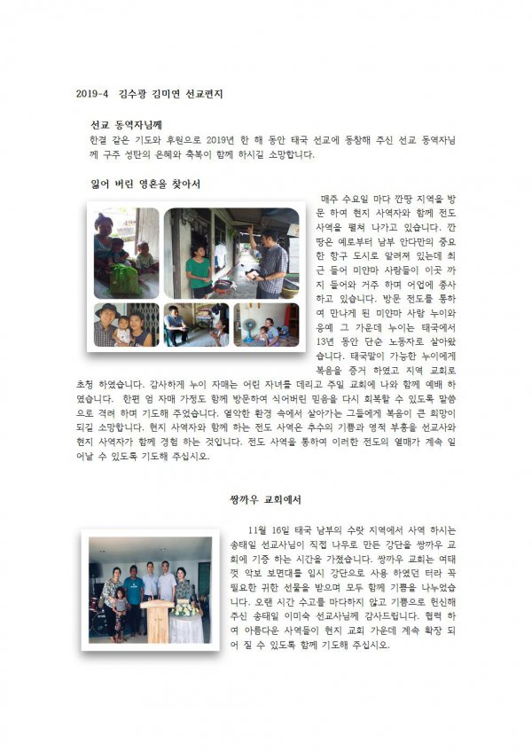 2019-12 태국 김수광 & 김미연 선교사 선교보고 및 기도요청