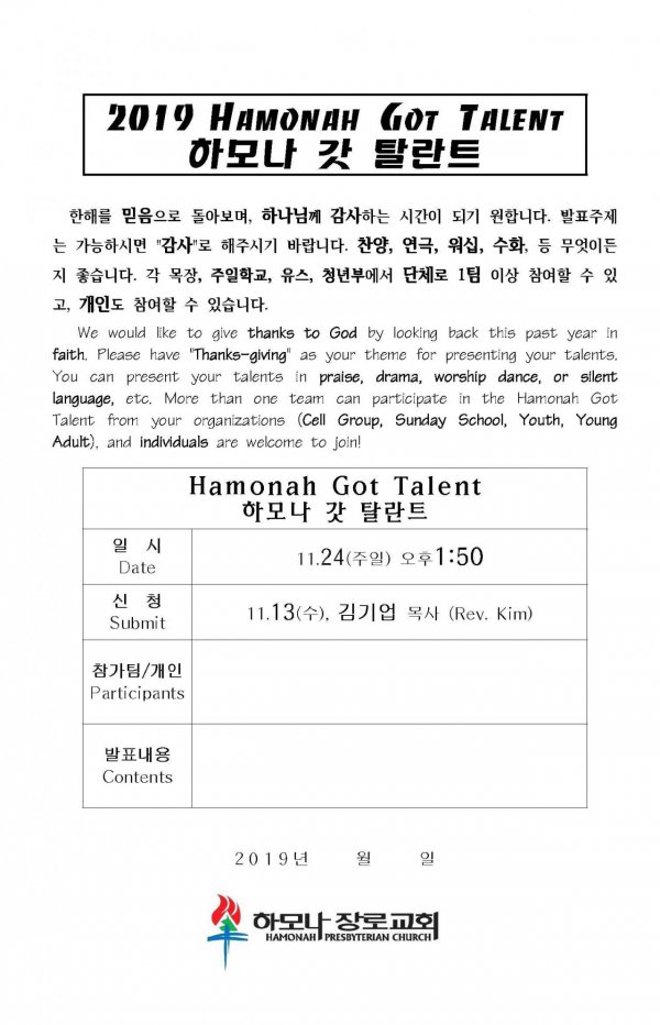 2019-11-24 하모나 갓 달란트