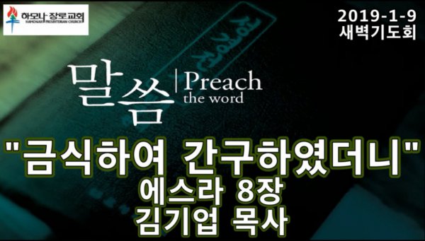 2019-1-9, "금식하여 간구하였더니", 에스라 8장, 새벽기도, 하모나장로교회, 김기업 목사