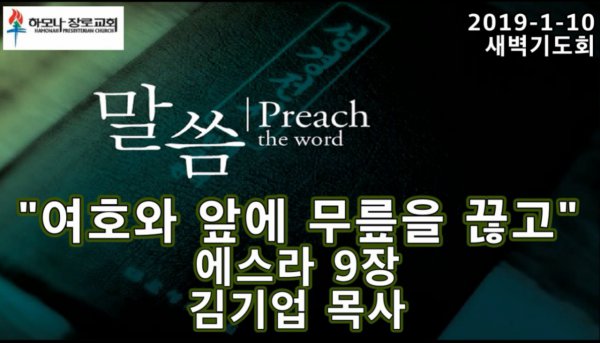 2019-1-10, "여호와 앞에 무릎을 끊고", 에스라 9장, 새벽기도, 하모나장로교회, 김기업 목사