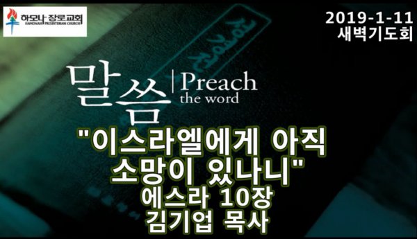 2019-1-11, "이스라엘에게 아직 소망이 있나니", 에스라 10장, 새벽기도, 하모나장로교회, 김기업 목사