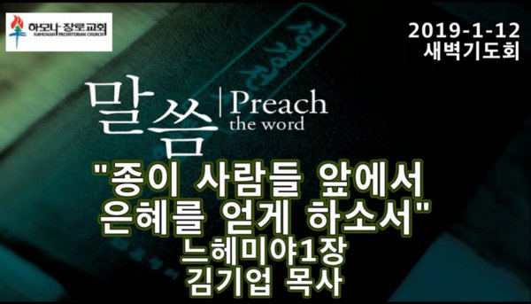 2019-1-12, "종이 사람들 앞에서 은혜를 얻게 하소서", 느헤미야1장, 새벽기도, 하모나장로교회, 김기업 목사