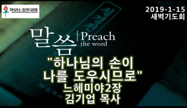 2019-1-15, "하나님의 손이 나를 도우시므로", 느헤미야2장, 새벽기도, 하모나장로교회, 김기업 목사