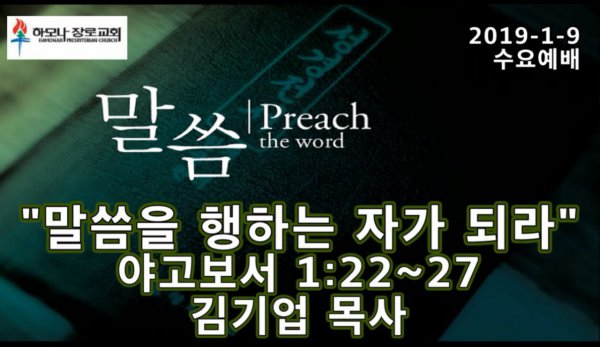 2019-1-9, "말씀을 행하는 자가 되라" 야고보서 1:22~27, 수요예배, 하모나장로교회, 김기업 목사