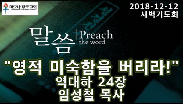 2018-12-12, "영적 미숙함을 버리라!", 역대하 24장, 새벽기도, 하모나장로교회, 임성철 목사