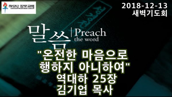 2018-12-13, "온전한 마음으로 행하지 아니하여", 역대하 25장, 새벽기도, 하모나장로교회, 김기업 목사