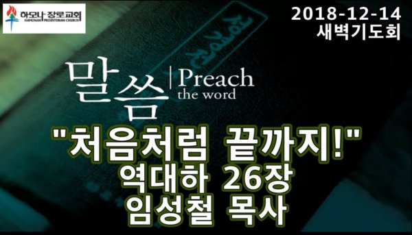 2018-12-14, "처음처럼 끝까지!", 역대하 26장, 새벽기도, 하모나장로교회, 임성철 목사