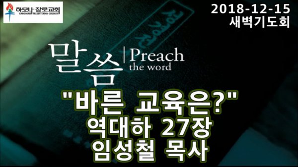 2018-12-15, "바른교육은?", 역대하 27장, 새벽기도, 하모나장로교회, 임성철 목사