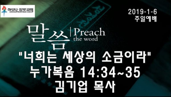 2019-1-6, "너희는 세상의 소금이라", 누가복음 14:34~35, 주일예배, 하모나장로교회, 김기업 목사