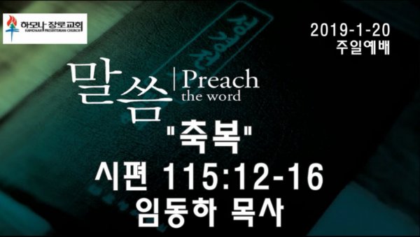 2019-1-20, "축복", 시편 115:12-16, 주일예배, 하모나장로교회, 임동하 목사