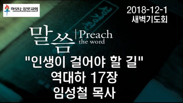 2018-12-1, "인생이 걸어야 할 길", 역대하 17장, 새벽기도, 하모나장로교회, 임성철 목사