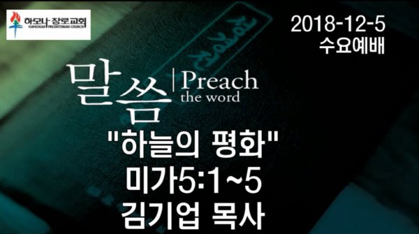 2018-12-5, "하늘의 평화", 미가5:1~5, 수요예배, 하모나장로교회, 김기업 목사