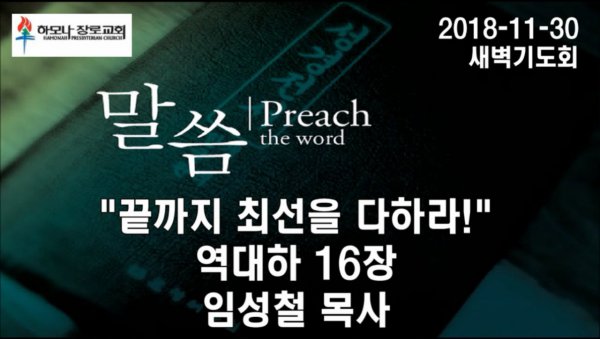 2018-11-30, "끝까지 최선을 다하라!", 역대하 16장, 새벽기도, 하모나장로교회, 임성철 목사