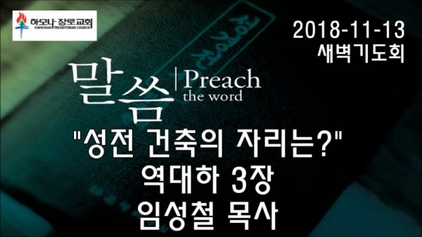 2018-11-13, "성전 건축의 자리는?", 역대하 3장, 새벽기도회, 하모나장로교회, 임성철 목사