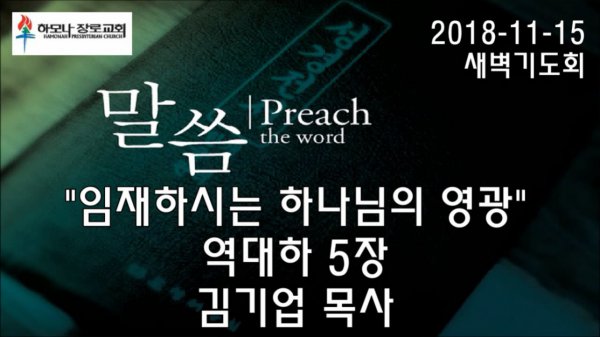 2018-11-15, "임재하시는 하나님의 영광", 역대하 5장, 새벽기도회, 하모나장로교회, 김기업 목사