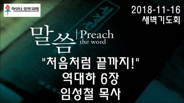 2018-11-16, "처음처럼 끝까지!", 역대하 6장, 새벽기도회, 하모나장로교회, 임성철 목사